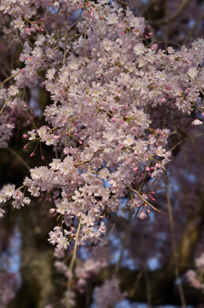 2011/04/20 足立山一帯の桜が散り始める頃、妙見のしだれ桜が満開になります。 今年は例年になく花の着きが良いそうです。毎年来てる人がずっと見とれていました。 一度見にいくと気持ちいいですよ。